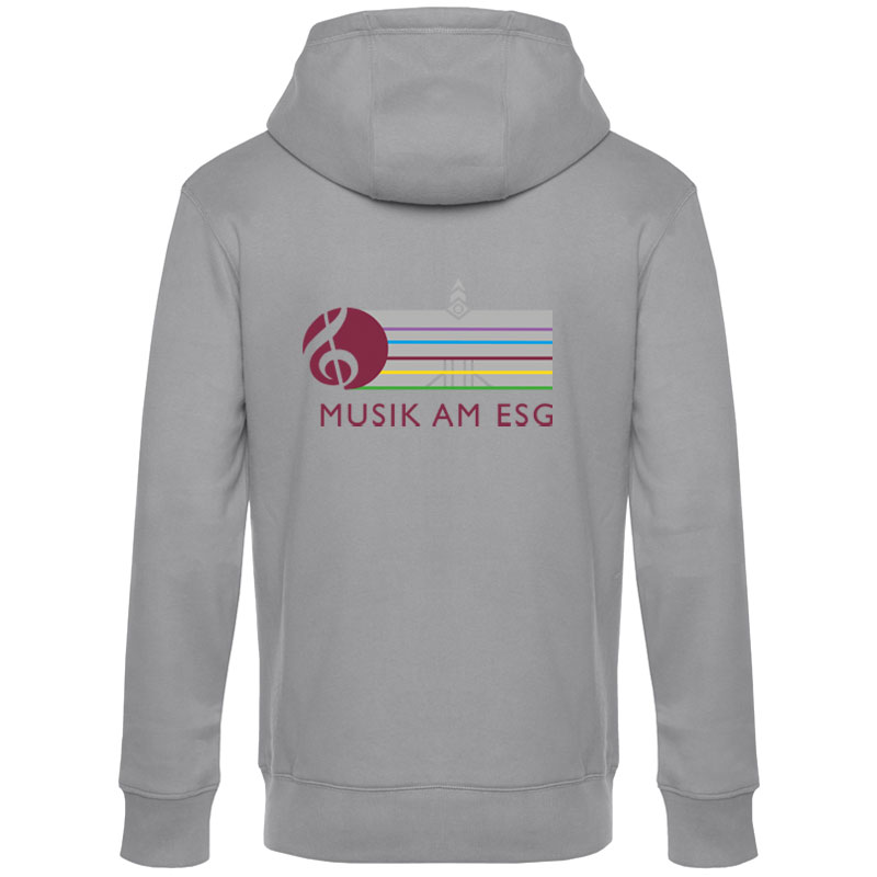 MUSIK AM ESG Herren Hoodie in hellgrau melliert mit MUSIK AM ESG Logo auf der Rückseite